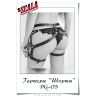 Корсаж, стринги, чулки. Полупрозрачная ткань. Плотно облегает тело.