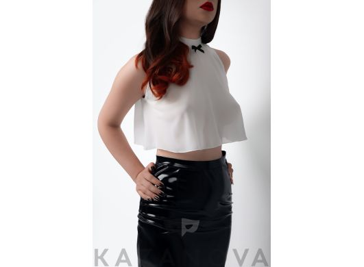 в комплекте: топ, юбка, стринги, чулки, манжета.