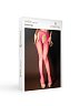 Чулки сделаны из сетки. Плотный пояс подчеркивает талию и оставляет открытыми ягодицы. Чулки плотно облегают тело. Декорированы стразами.