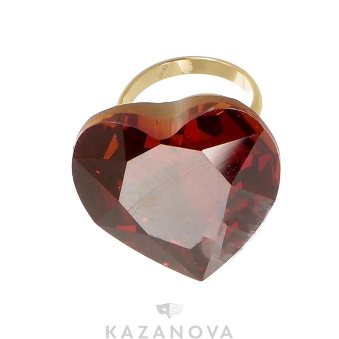 Кольцо золотистое с рубиновым кристаллом Сваровски в форме сердца