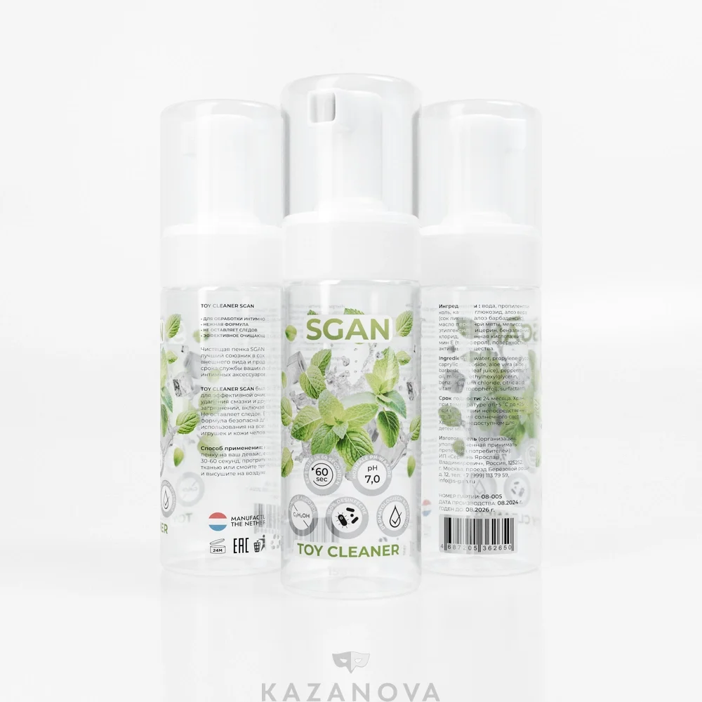 SGAN Toy Cleaner хорошо удаляет загрязнения и бактерии и при этом деликатно и бережно относится с премиум-материалам – можно использовать для очищения секс-игрушек из силикона и киберкожи.