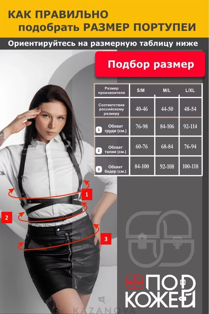 С такой портупеей будут отлично смотреться простые и однотонные платья с вырезами на груди. Регулируемые ремешки обеспечат идеальную посадку по фигуре. Будет отлично смотреться с повседневным нарядом. Ее смело можно надевать поверх классической блузки, рубашки или водолазки. Будет уместна она и в качестве эротического наряда наедине с любимым человеком.