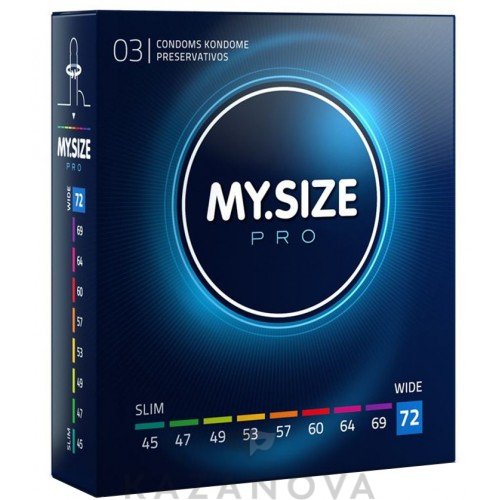 MY.SIZE 72: Длина 223 мм, ширина - 72 мм, обхват полового члена - 15,5-16,5 см.