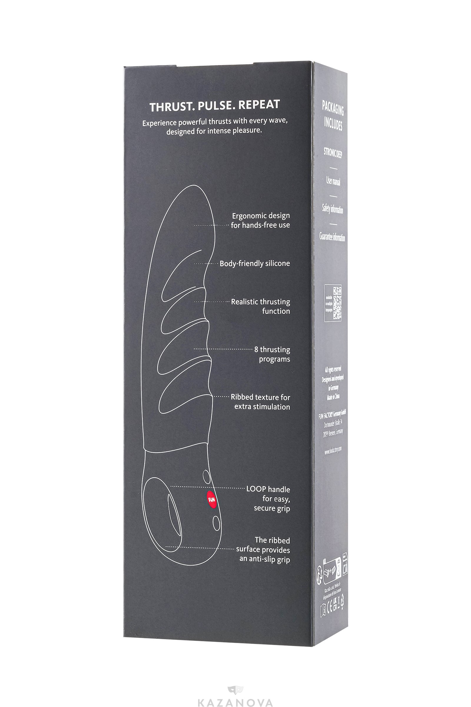 С 4 уровнями скорости и 4 режимами поступательных движений этот пульсатор нагнетает предвкушение волна за волной. Эргономичная ручка LOOP с ребристой нескользящей текстурой и интуитивно понятным 3-кнопочным управлением обеспечивает надежный захват и удобную навигацию. Изготовленный из приятного для тела силикона, заряжается через USB-C (кабель в комплект не входит) и полностью водонепроницаем (IPX7), STRONIC DEEP всегда готов к вашему следующему приключению. Хотите поднять ощущения на новый уровень? Всегда используйте смазку на водной основе!