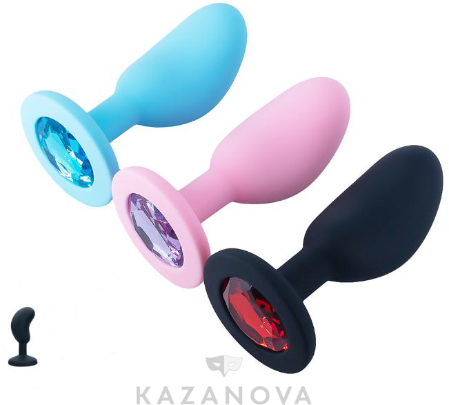 Втулка анальная из силикона изогнутая средняя черная с стразом