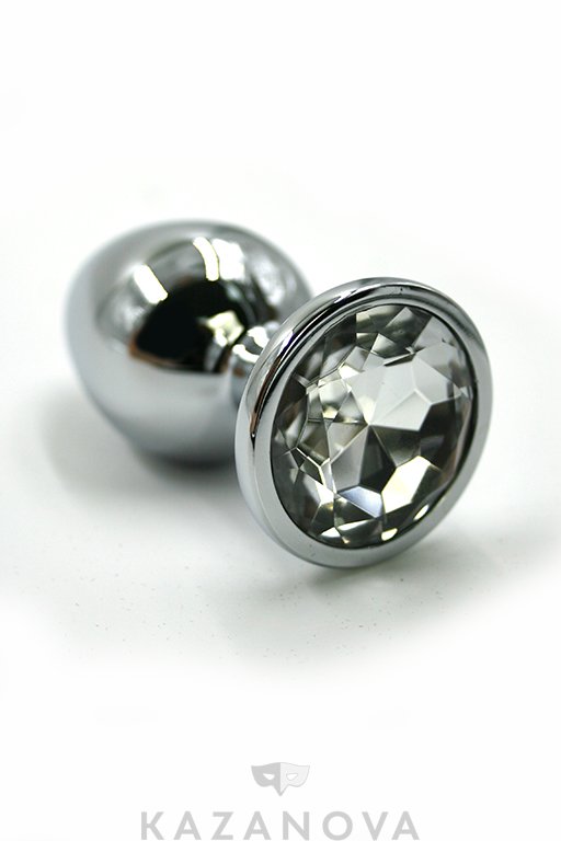 Втулка анальная Kanikule металлическая малая серебристая с прозрачным стразом