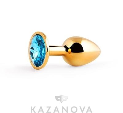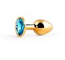 Втулка анальная металлическая малая золотая с голубым кристаллом
