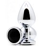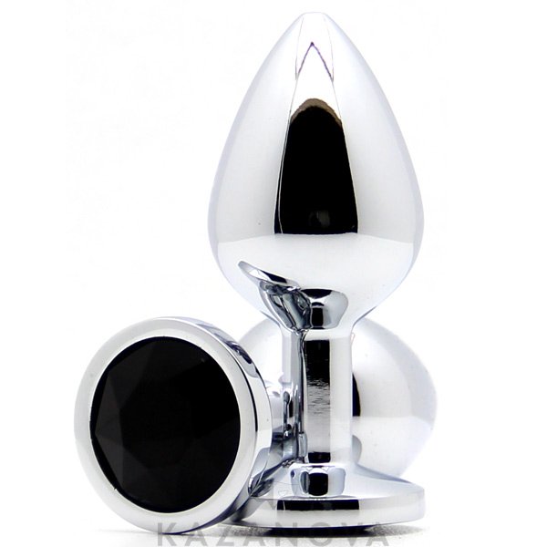 Втулка анальная металлическая средняя серебристая с черным стразом 018