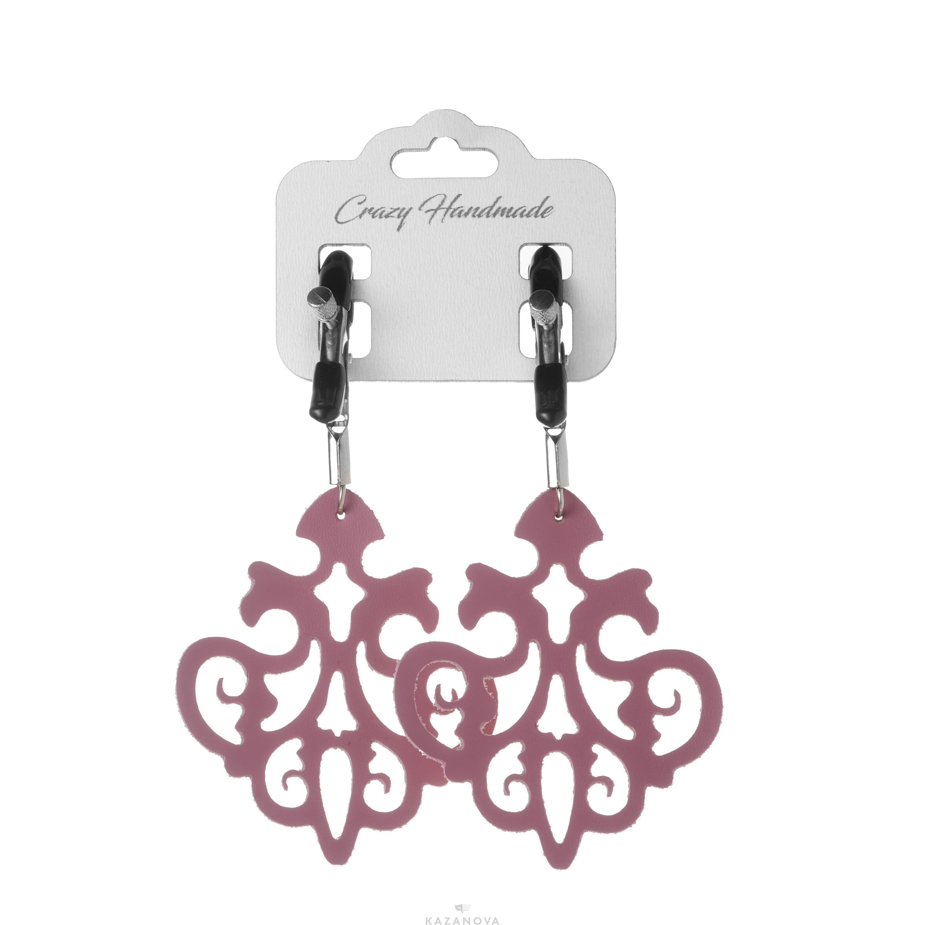 Зажимы на соски Crazy Handmade с узорами из кожи металлические с цепочкой розовые